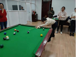 共有十多名教职工报名参加了台球比赛。本次比赛分男女组,采用中式黑八比赛规则,采取循环赛计算成绩。赛场上每名选手都认真对待,不停走动查看最佳击球点,架杆、出杆、撞球、落袋,潇洒的身影成为一道道特别的风景,定格在大家的眼中。