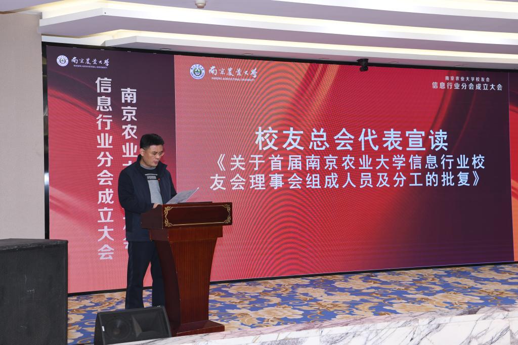 发展历史上的一个重要里程碑,他代表学校党委和行政以及校友总会对信息行业校友分会的成立和首届理事会的组建表示热烈祝贺。他指出,正是由于三十余年来代代信息人和一线信息系教师的不懈努力,我校的信息专业才能逐渐发展壮大,跻身国家一流学科,对此他表示由衷的感谢。他希望信息行业校友分会在总会的指导下,规范管理,发挥学校学科优势,服务社会建设,希望校友牢记“诚朴勤仁”校训精神和“开放包容,合作共促”的校友理念,多与学校相关职能部门合作交流,促进科技成果快速转化,实现校友个人和学校事业共同发展。