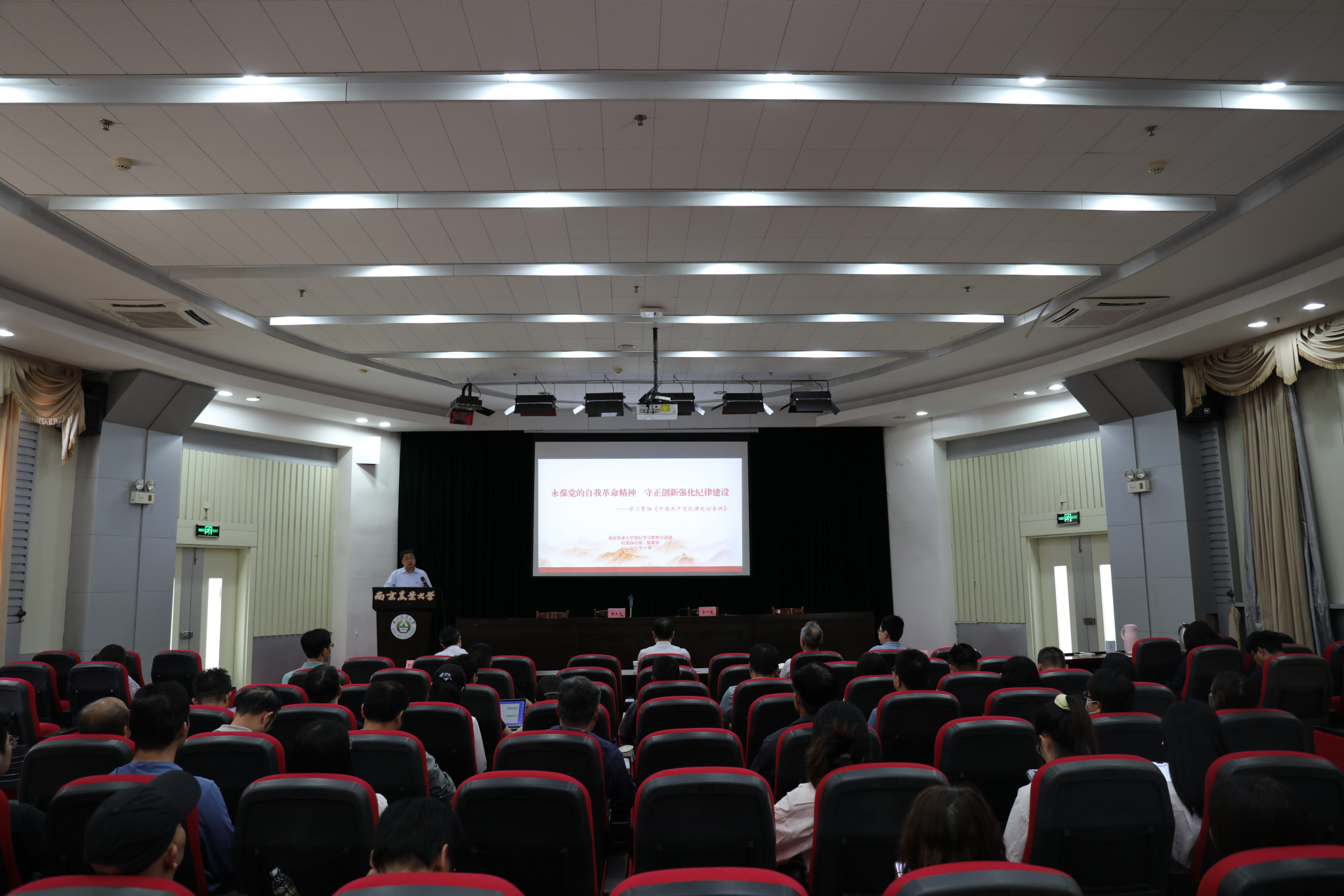 党委与浦口校区管委会党工委、人工智能学院党委联合举办党纪学习专题培训,校监察处副处长(主持工作)、纪委办公室副主任(监督检查室主任)梁立宽应邀作专题辅导报告。三家单位领导班子成员、教职工党员参加培训。