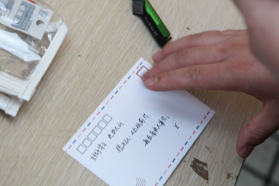 图六 我校学生明信片上写下对龙山中学真挚的祝福
