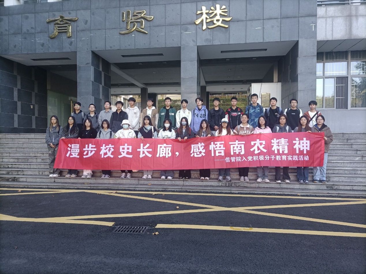 2024年秋季积极分子前往校史馆开展以“漫步校史长廊,感悟南农精神”为主题的实践活动。在引导员的带领下,同学们了解了百年南农的辉煌历程以及学校的总体规划与部署,通识了学校党组织的建设发展进程,更认识到新时代落在自己肩上的责任之重大。党旗飘飘,青春无悔。