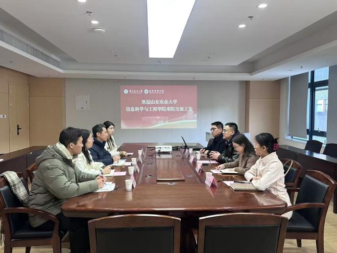 刘成峰对学院的热情接待表示感谢,并介绍山东农业大学信息科学与工程学院的办学情况。随后,双方就学生党建、团学工作、科创竞赛、学生就业等方面展开深入交流,分享工作经验。