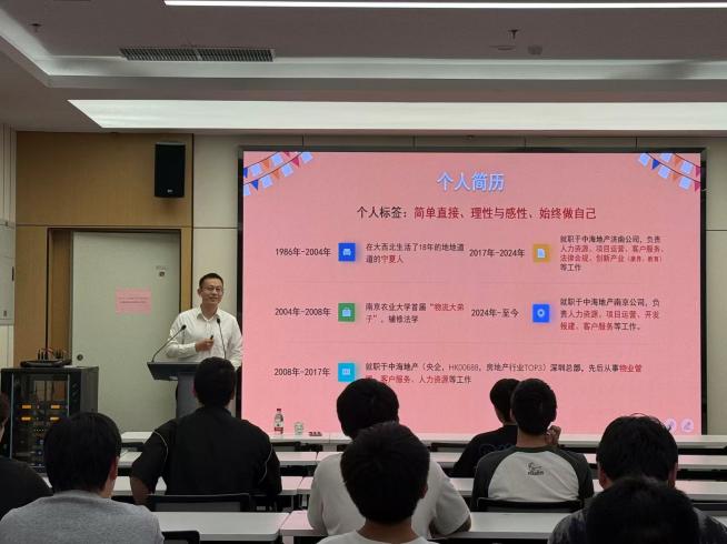 2008届物流工程专业优秀校友、中海地产南京公司副总经理陈树虎先生,为学院在校生带来一场题为“不迷茫,不彷徨,从容应对,开启美好人生”的专题交流分享会。