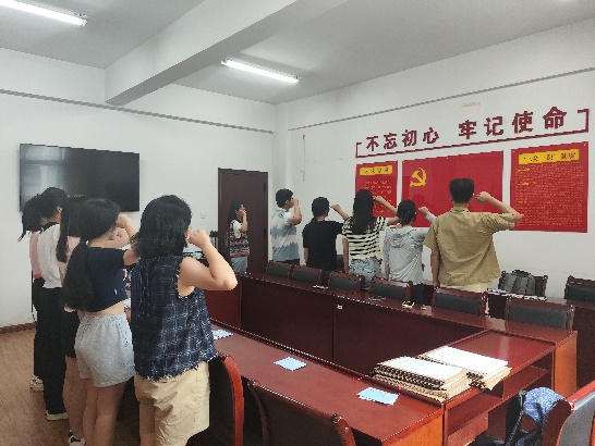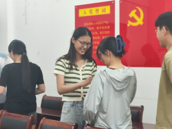 紧接着,支部副书记谢佳宏同学带领大家重温了入党誓词,并互相佩戴党徽。在庄严的誓词声中,每一位党员都感受到了作为一名共产党员的责任和使命。大家纷纷表示要坚定入党初心,牢记党的宗旨,始终做到对党忠诚、服务人民、奉献社会。