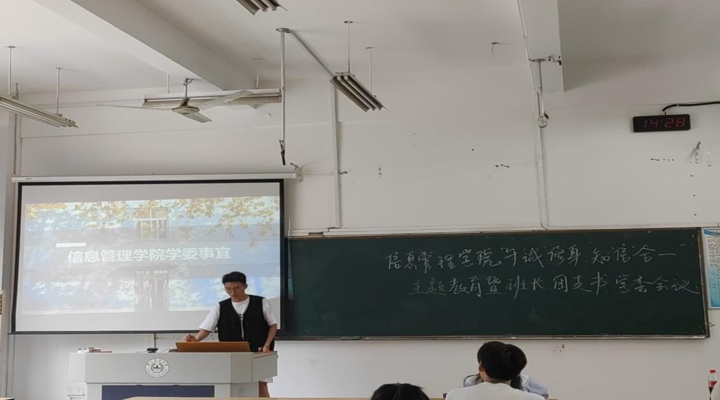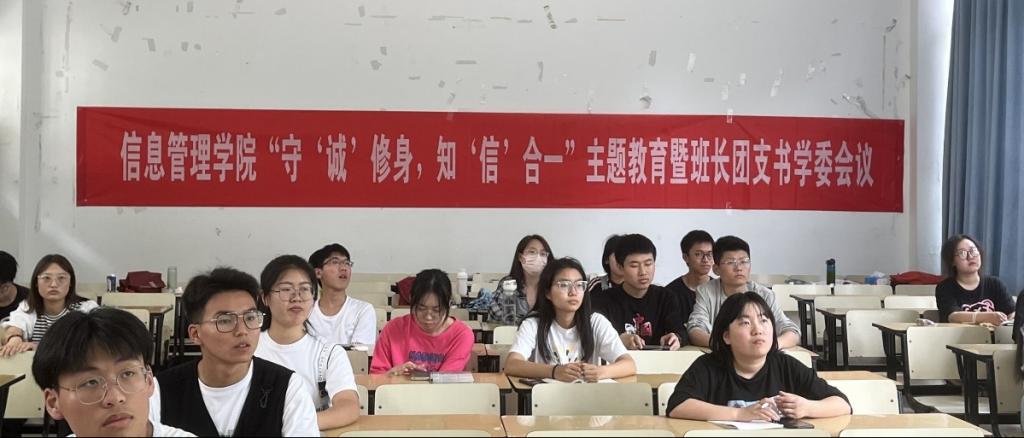 于5月27日在汇贤楼B103召开了“守‘诚’修身,知‘信’合一”主题教育暨班长团支书学委会议,由大一、大二各班级班长团支书学委参加并学习。